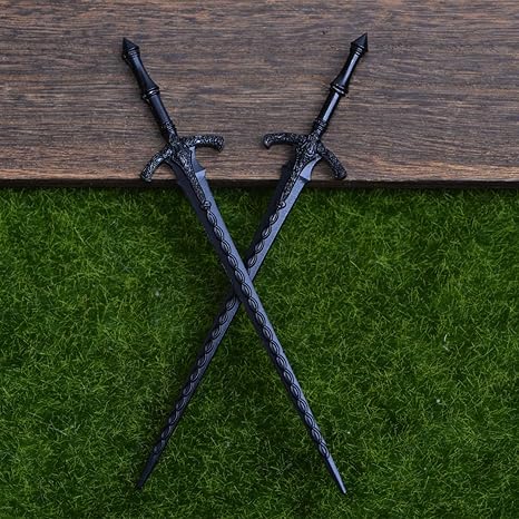 - Craft Details:The blade has delicate engraved textures, with vintage patterns on the hilt and guard. The overall matte black finish restores the mysterious and tough style of medieval weapons, retaining details even in small size.